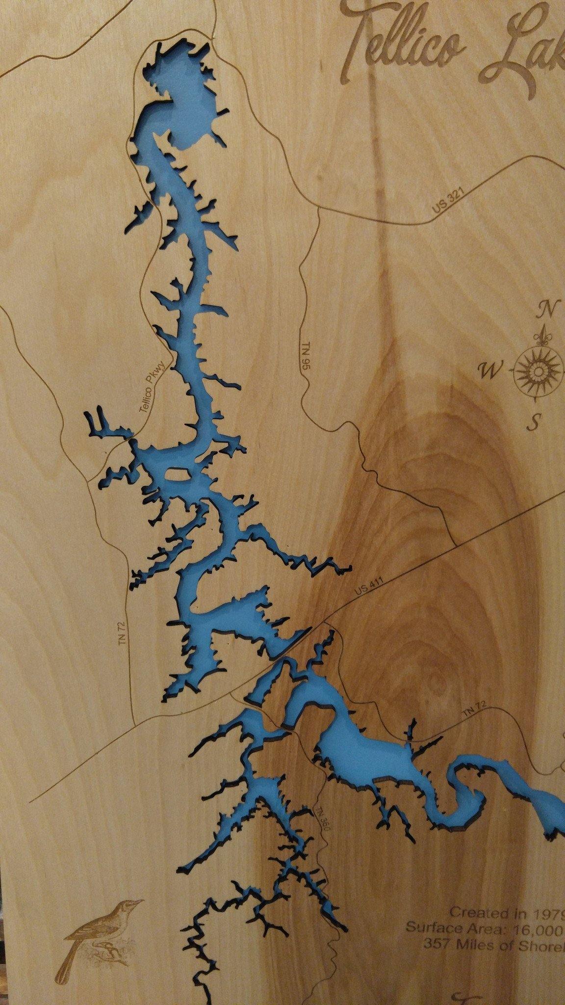 Tellico Lake Tennessee laser cut wood map| Personal Handcrafted