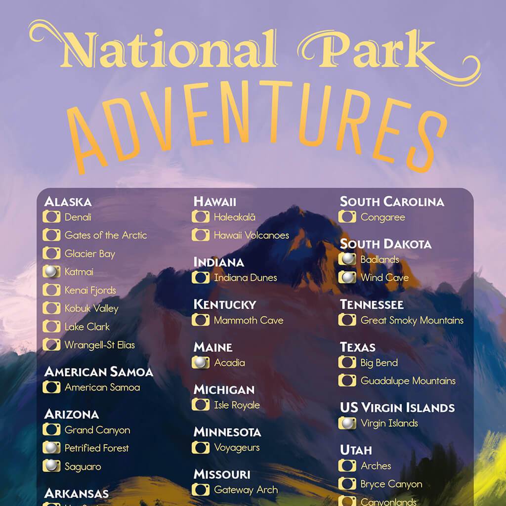 National Park Checklist and Map Wall Art Poster 12” x 16